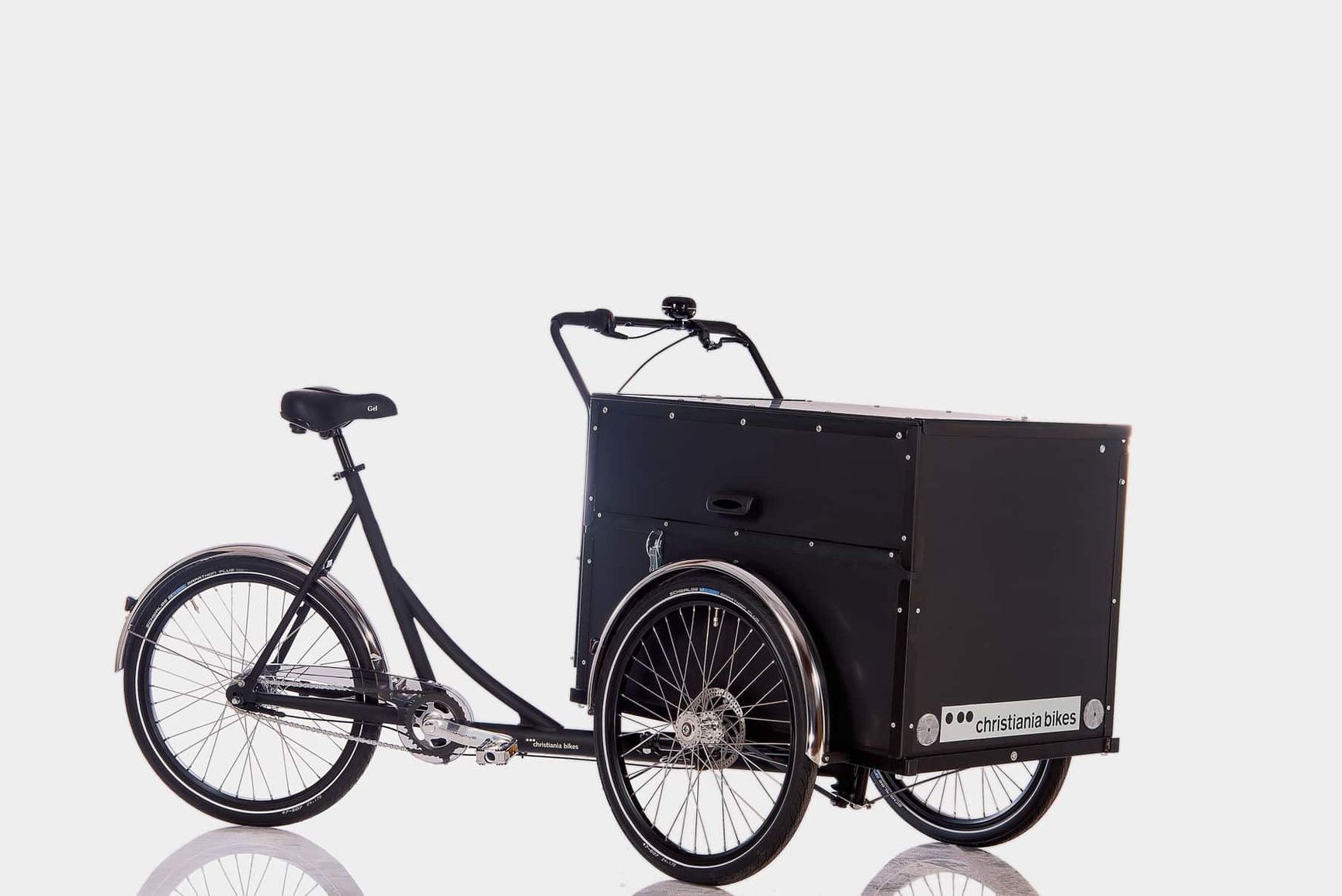 30 cm länger als das Classic Medium und damit noch mehr Transport-Volumen. Wie alle Christiania Bikes auch mit Front-Türe.